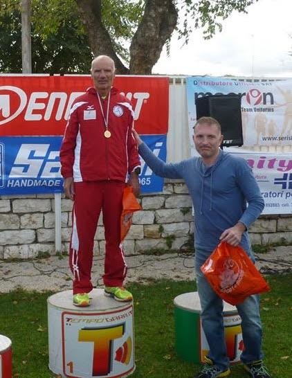 Sotto la pioggia, nella gara sprint, invece, tra gli adulti esordio nel duathlon di Adriana Sbiroli e Giampiero Luciani. Su un percorso abbastanza pianeggiante, che favoriva quindi i velocisti, ancora un secondo posto per la Otrè con tre atleti nella top ten della classifica assoluta. Roncone raggiunge il bronzo, Marco Selicato quinto e, l’uomo garanzia, Tommy Liuzzi ottavo. Completano il quintetto che assegnava i punti alla squadra Intini e Rizzi. Il team nocese porta a casa anche un titolo regionale di specialità con il coriaceo Franco Capurso, gioiese, classe 1945, un passato da ciclista, è stato anche atleta della Montedoro Noci.