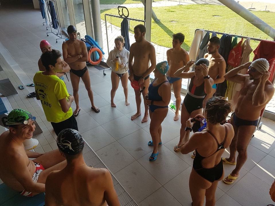 Questa domenica è toccato a Marco Selicato organizzare un doppio allenamento di nuoto nell’innovativa piscina e, subito dopo, di corsa per le campagne limitrofe. Un bel sole ha accolto circa venti atleti, tra uomini e donne, che, nel weekend della famosa sagra di Bacco nelle gnostre, si sono cimentati nel programma del coach monopolitano. Focus principale sulla tecnica di nuoto, che ha interessato soprattutto chi in acqua ha maggiori margini di miglioramento.