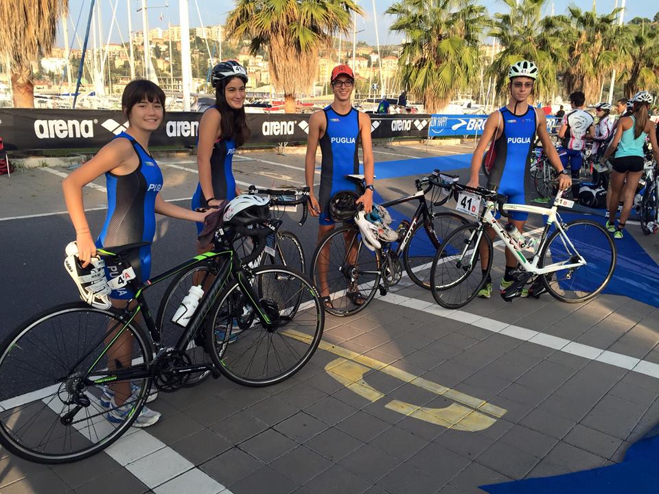 Una staffetta Junior con Anna Mangiullo, Donatello Padolecchia, Maria Mangiullo e Davide Quarta al via con i mitici body Puglia che qualcuno ha voluto fotografare, forse per imitarne la grafica. Diciannove squadre al via con le superpotenze del Lazio e del Nord con più rappresentative e tutte molto forti, 12 regioni rappresentate. La Puglia è riuscita a tenere dietro solo la Toscana, troppo squilibrato il quartetto con livelli diversi di capacitá nelle varie frazioni, ogni atleta ha dato il meglio, a ognuno va il ringraziamento per l’impegno e per il coinvolgimento dimostrato, per la prima volta la Puglia partecipa alla gara Junior, questo è anche il segno che i giovani stanno crescendo e continuano a fare triathlon e che stiamo imparando sempre meglio questa attività.